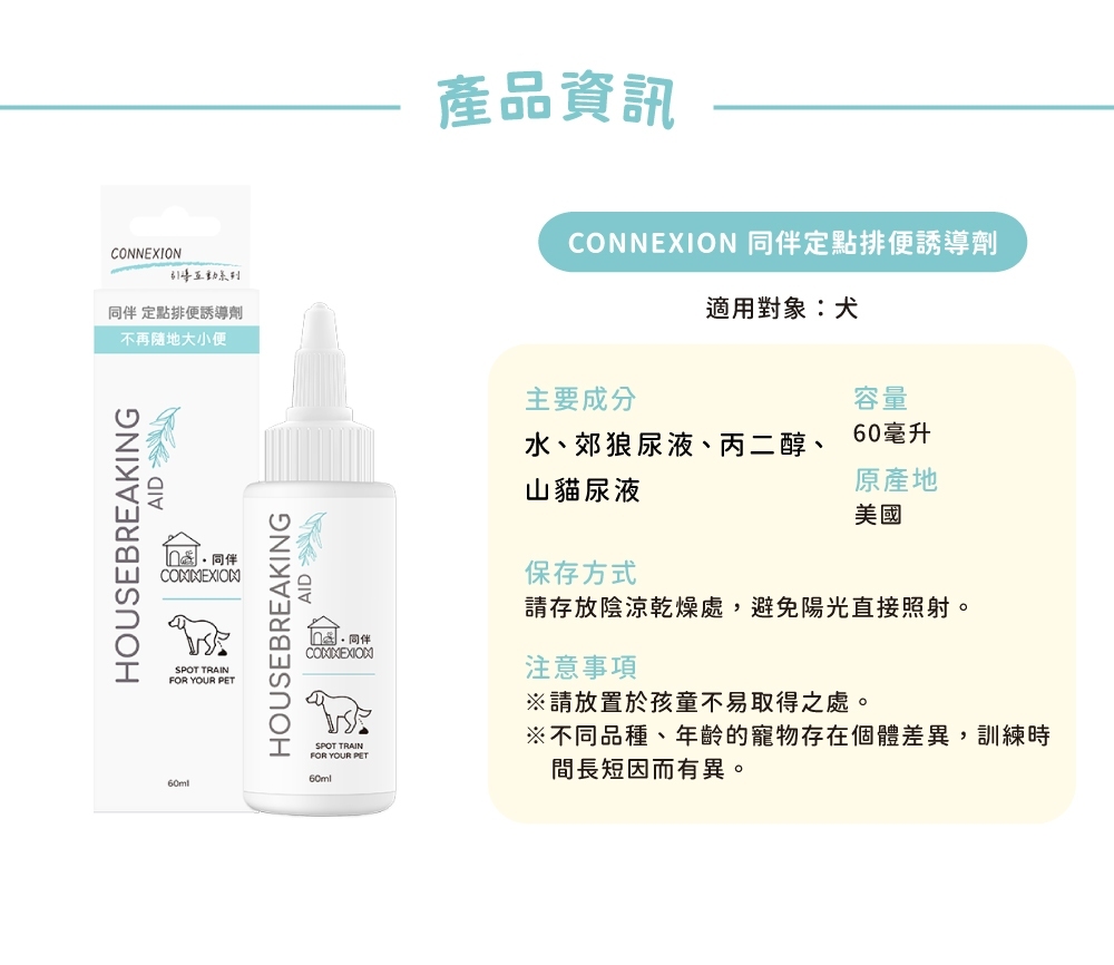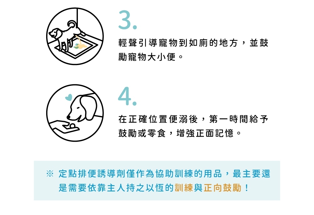 與犬貓排泄物氣味相仿,可方便快速的訓練您的寵物於固定地方大小便,維持居家環境清潔
