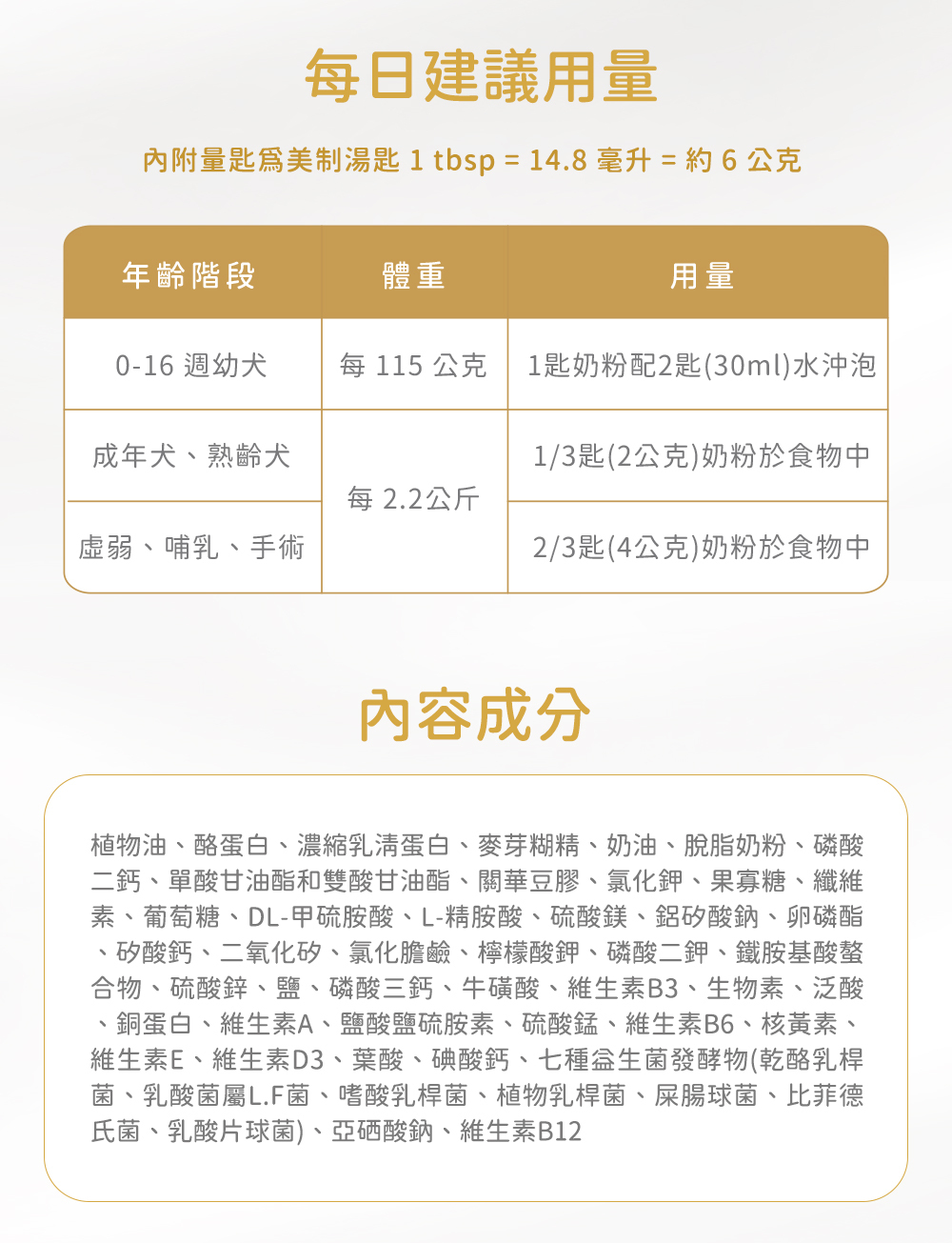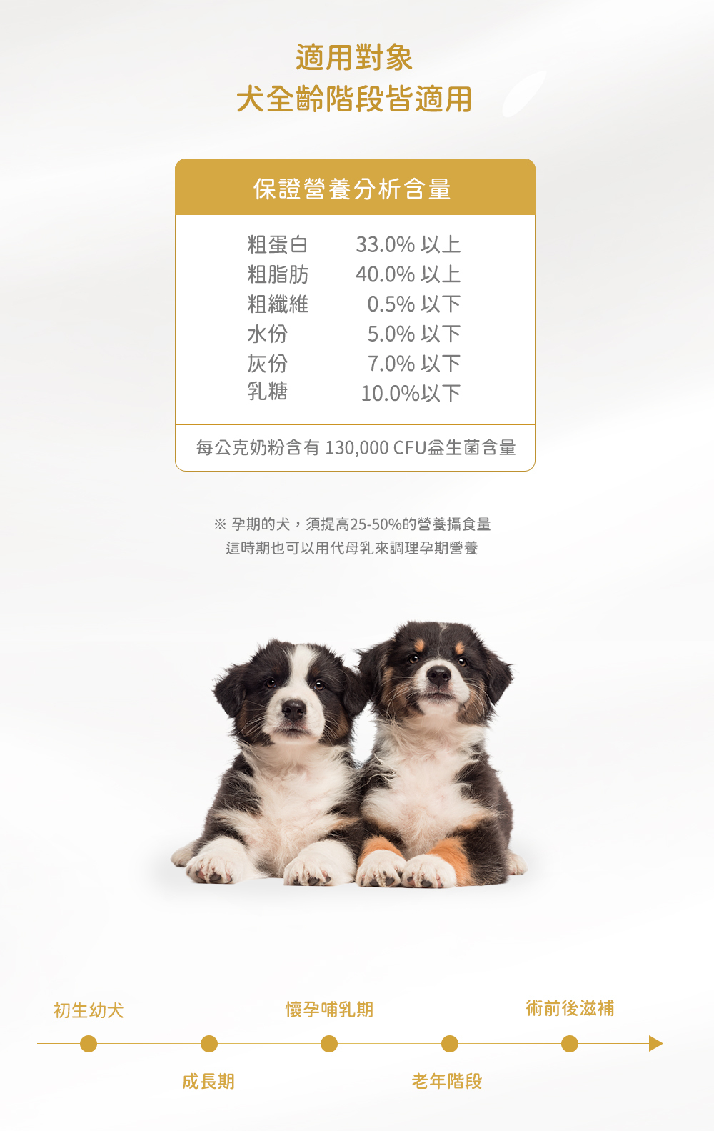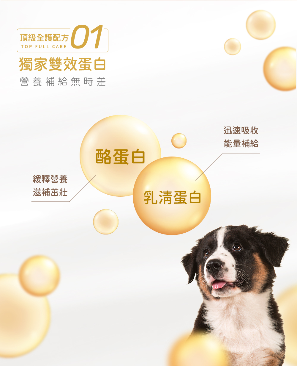 模擬母乳科技 | 與犬母乳相同的蛋白質、脂肪、碳水化合物比例