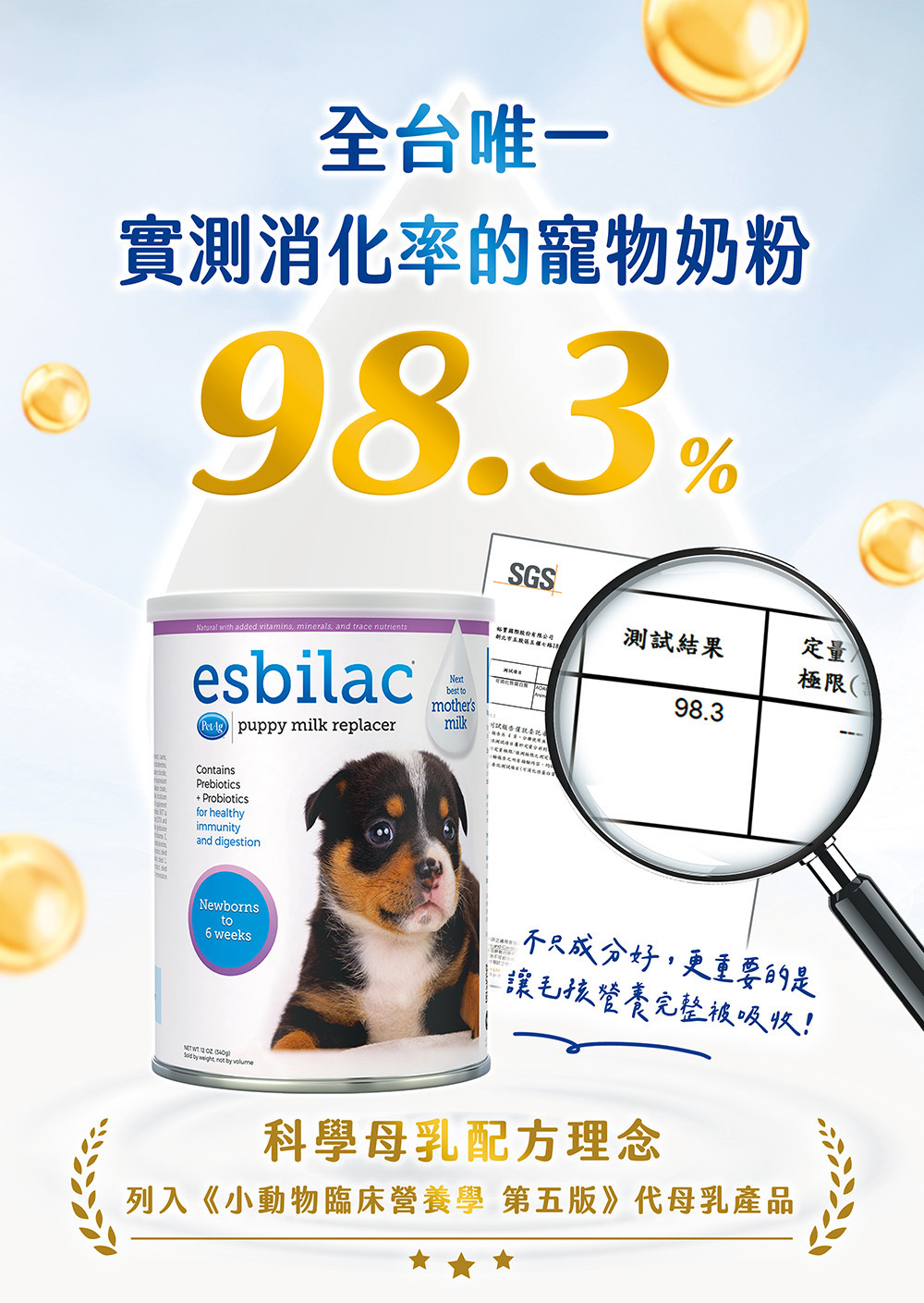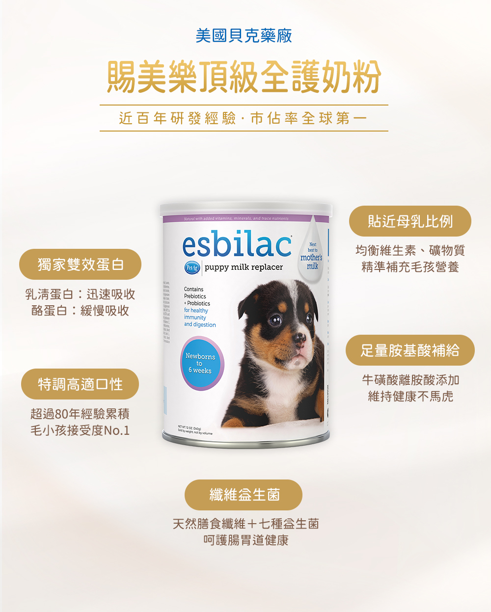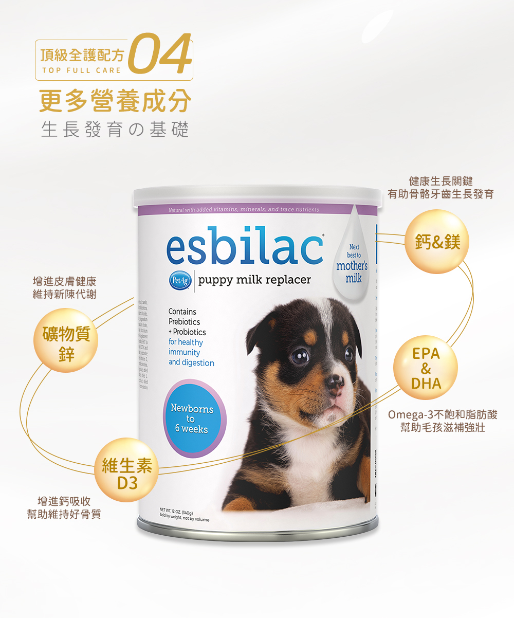 模擬母乳科技 | 與犬母乳相同的蛋白質、脂肪、碳水化合物比例