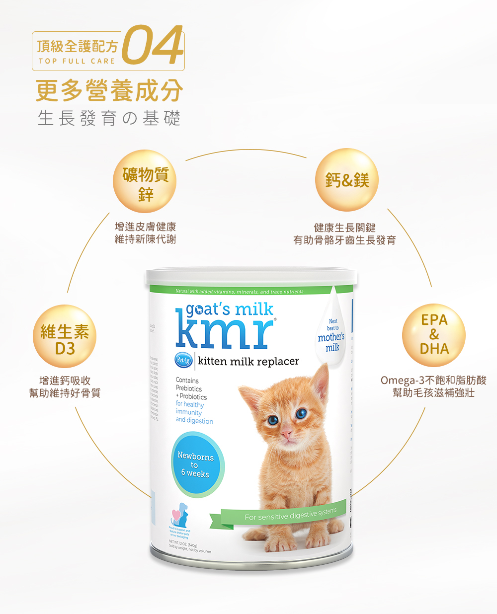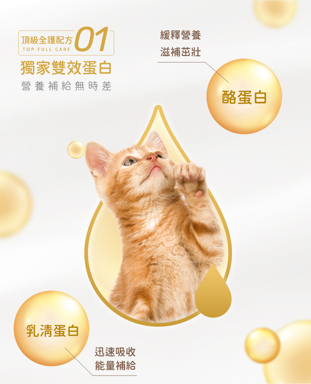 模擬母乳科技 | 與貓母乳相同的蛋白質、脂肪、碳水化合物比例