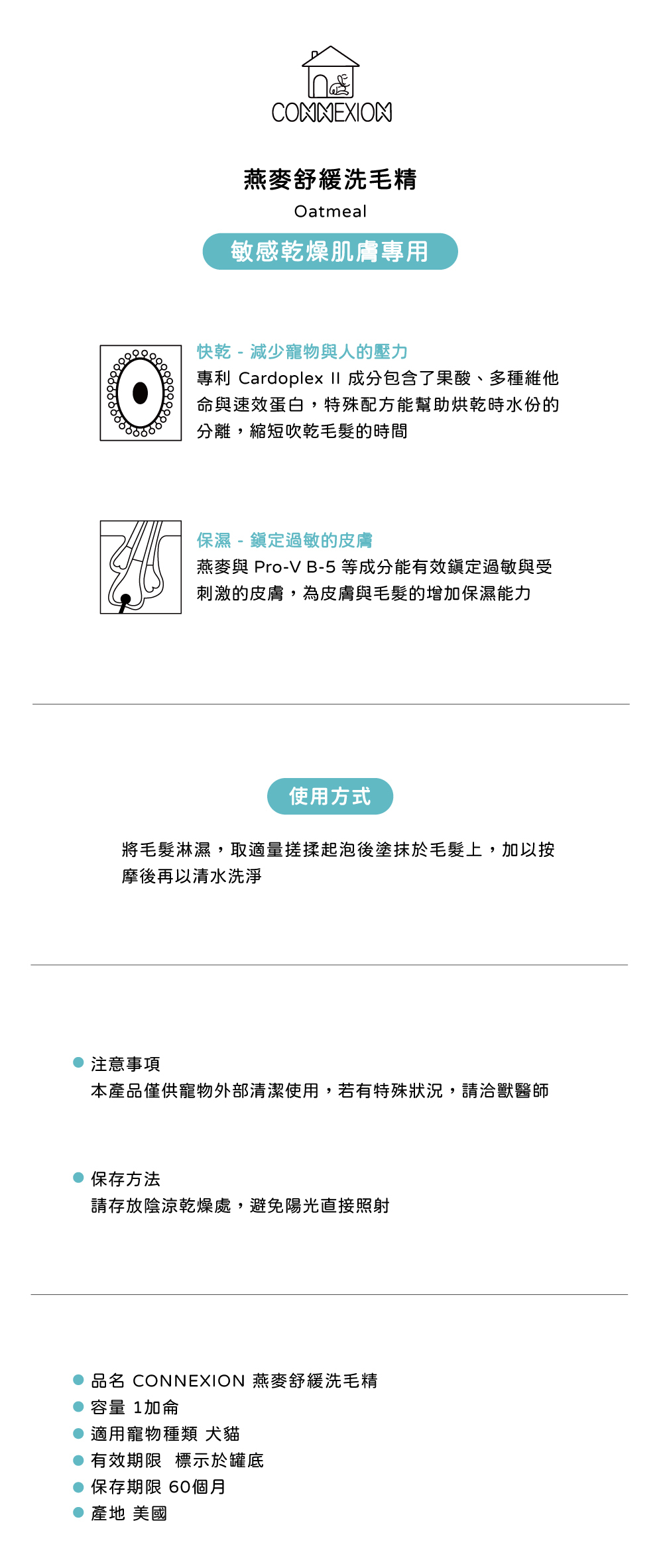 推薦給毛髮受損、敏感乾燥肌膚或皮膚狀況不佳的寵物使用