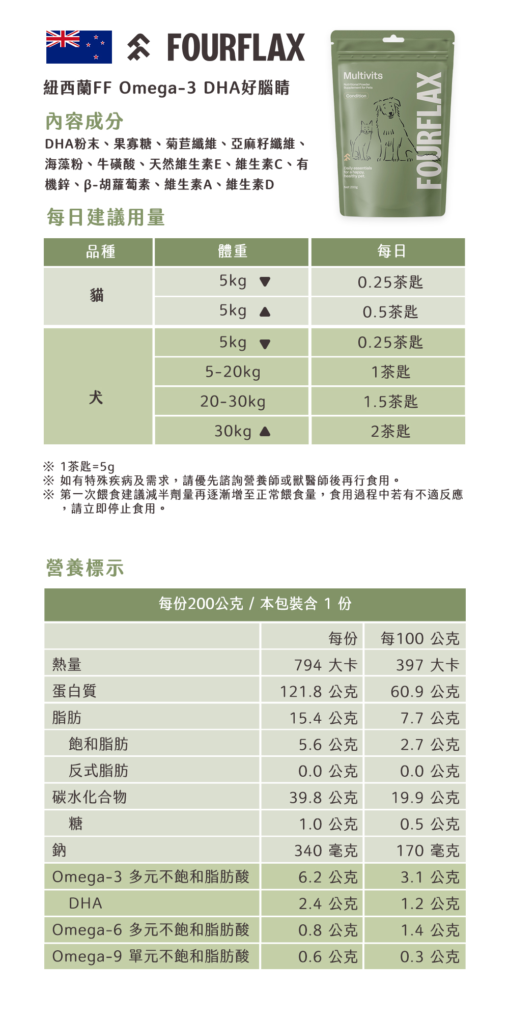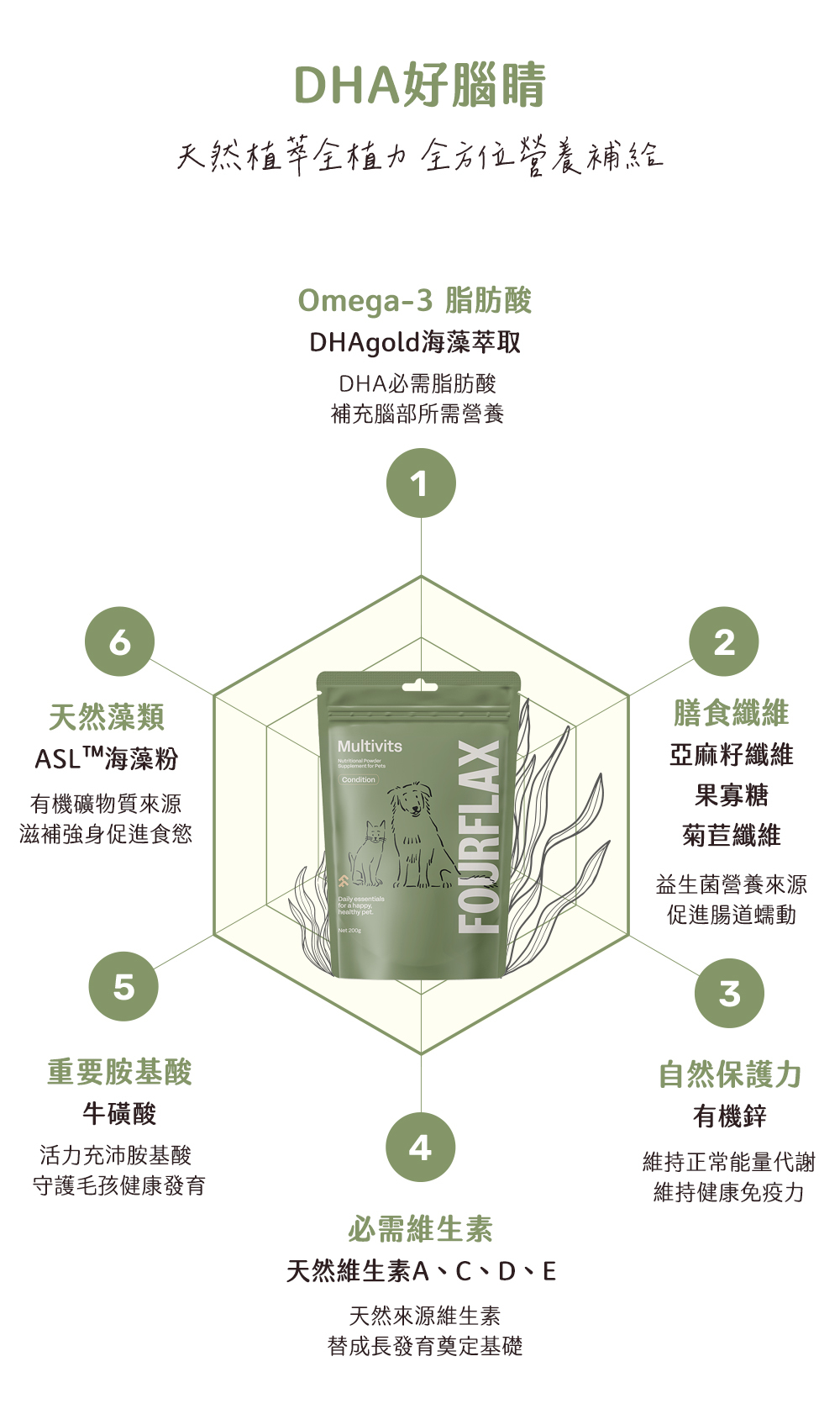 藻類來源DHA、亞麻籽纖維、必需營養素、牛磺酸 一包搞定