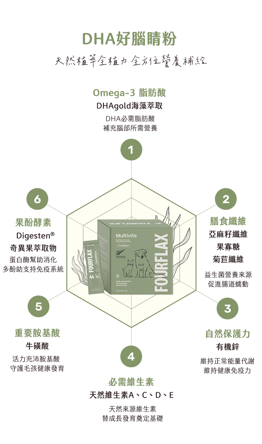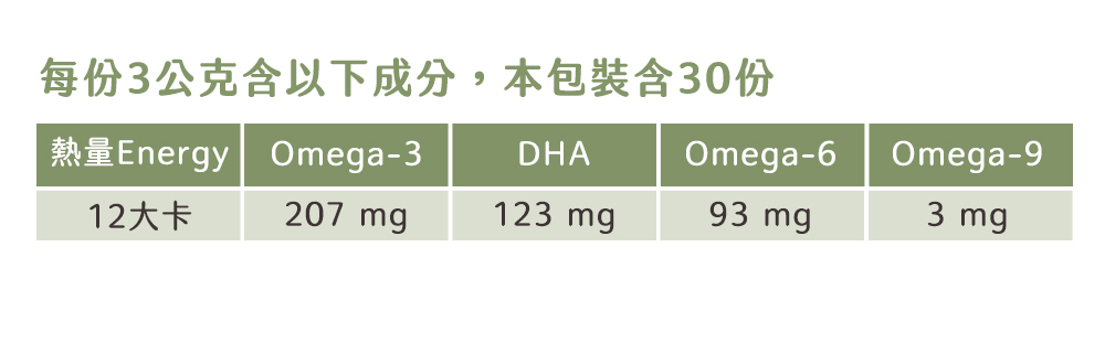 藻類來源DHA、亞麻籽纖維、必需營養素、牛磺酸 一包搞定