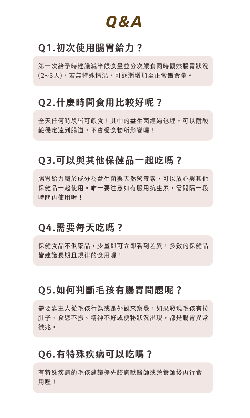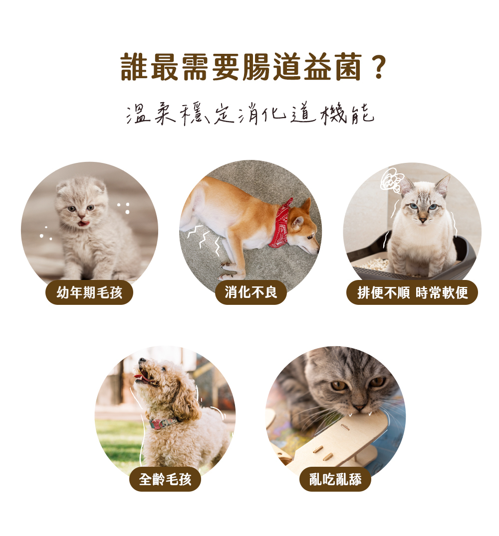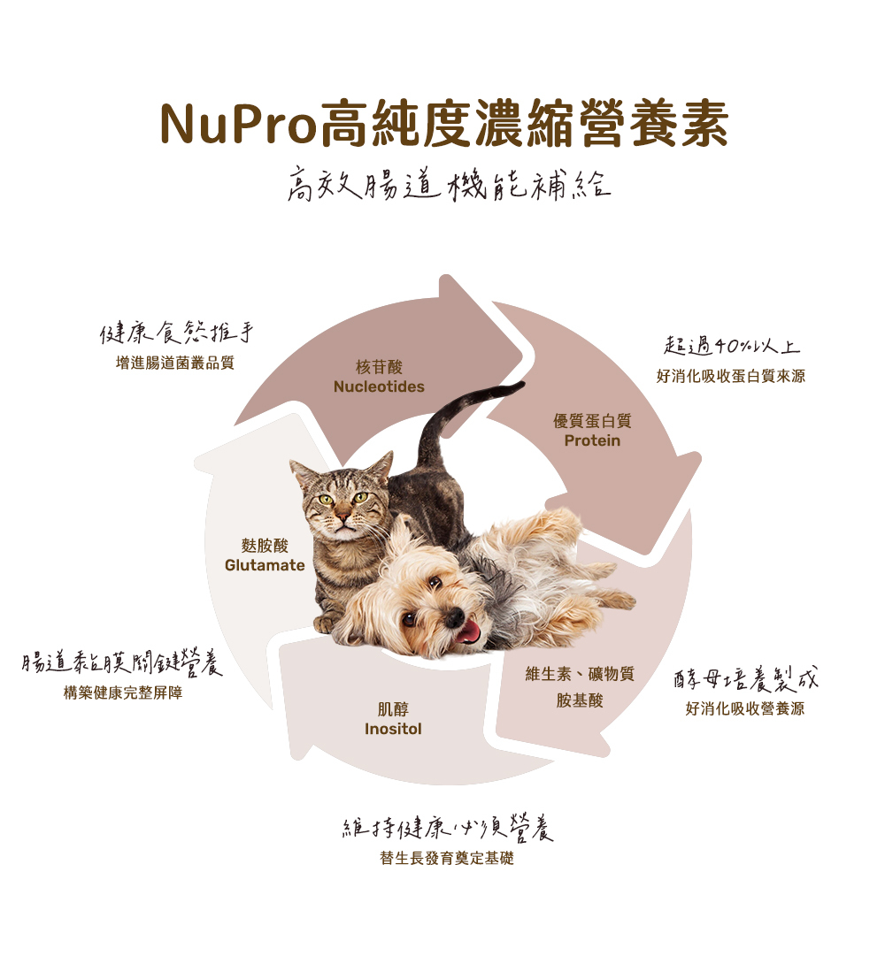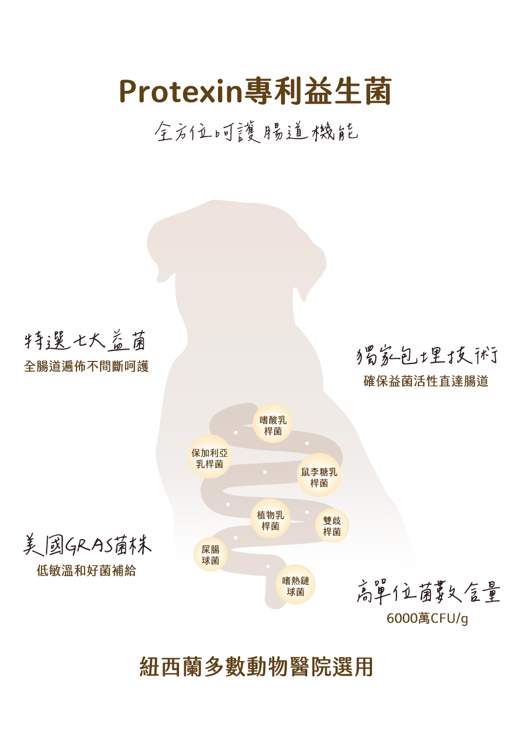亞麻籽纖維、益生菌、酵母(Beta-葡聚糖)、核苷酸